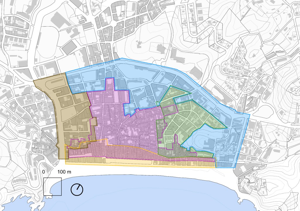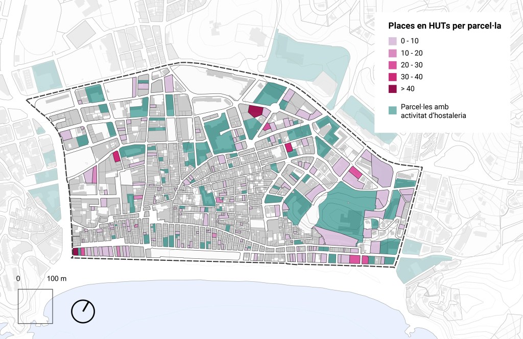 Aquestes àrees són: el nucli històric, que compta amb la major part del patrimoni, una alta pressió turística i una població de baixos ingressos, així com un destacat nombre d’habitatges buits; La Pinta i el front marítim, que fa de connexió amb la platja i presenta una alta densitat d’habitatges d’ús turístic, restaurants i hotels; la zona d’oci nocturn a Just Marlés i Riera, amb una gran presència de locals d’oci nocturn, hotels i restaurants; les zones properes a les Avingudes Blanes i Tossa de Mar, on es concentren grans hotels i una alta densitat d’allotjaments turístics, apareixent també zones d’equipament, i la zona residencial Vall de Venècia, l’entorn amb major renda del nucli antic i amb una alta densitat residencial.